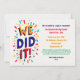 Eine farbenfrohe Grunge-Einladung mit überdimensionalem Schriftart-Sprichwort "WIR HABEN ES GETAN". Es ist als prom Einladung dargestellt und eignet sich perfekt für Abschlussfeiern und andere Meilensteine. (Bild von Freepik). Die Karte lässt sich leicht mit Ihren Formulierungen, Schriftart und Schriftart anpassen. Nicht genau das, was Sie suchen? Alle unsere Produkte können auf Ihre Bedürfnisse zugeschnitten werden, ohne Aufpreis. Kontaktieren Sie uns einfach heartfelthelper@gmail.com. Die Abstimmung der Produkte auf Ihre Anfrage ohne Aufpreis.