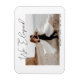 Mit dem neuen Foto Mr. und Mrs. name haben wir einen Minimalskriptankündigungsmagnet entwickelt. Minimalistisches und einfaches Design, um Ihre Familie und Freunde lassen wissen, dass Sie jetzt Mann und Ehefrau sind.