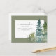 Wir haben neue Zuhause Script Pine Tree Green Postcard Dieses Design beinhaltet Aquarellkiefernbäume und benutzerdefinierte Skriptkalligraphie auf einem einfachen Hintergrund.