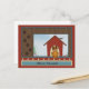 Bewegende Ankündigung mit einem bezaubernden Hund sitzend im Hof in seinem Hundehaus, mit einem Vogel oben, und Blume wachsen im Hof. Rotes, cremefarbenes, blaues und braunes Design, das mit Pappabzügen bestickt ist, lasse Freunden und der Familie, Ihren Adresswechsel und Ihre neue Zuhause zu kennen. Niedliche Hundekorrespondenz lasse Ihren Mitarbeitern zu wissen, wo Sie sich gerade befinden. Benutzerdefinierte personalisierte neue Adressenankündigung.