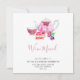 "We've Moved" bewegende Ankündigung oder neue Adresskarte mit handgemalten pinkfarbenen Aquarelltee-Set. Entworfen und illustriert von der unabhängigen Designerin Kristine Lee. Weitere Informationen finden Sie auf unserer Website unter www.kristineleedesigns.com