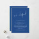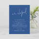Minimalistisch haben wir Script Mid Blue Elopement Ankündigung verewigt. Verfügbar in gedruckter und digital. Mit einem QR-Code zu einer Seite, wo Ihre Gäste können Ihre Hochzeit Fotos auf der Rückseite sehen. Ihr QR-Code wird automatisch generiert, um den Beispielcode im Design zu aktualisieren, wenn Sie einfach die Beispiel-URL in der Vorlage mit Ihrer eigenen URL ändern. Oder Sie können das entfernen, falls nicht erforderlich. Ein Set informelles Skript für Wir Eloped und die Erholung des Textes können Sie leicht personalisieren.