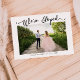 Elegante und moderne Hochzeitsankündigung auf zwei Seiten mit einem handgeschriebenen Skript, das auf Ihrem Foto "We've Eloped" steht. Diese Karte hat insgesamt drei Fotos.
