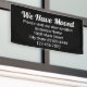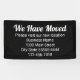 Dieses sich bewegende Werbebanner hat einen weißen Text, den Sie anpassen können. Dieses schwarze Banner sagt, dass wir uns bewegt haben Bitte besuchen Sie unsere neue Position. Zusätzliche Textzeilen stehen für Ihren Firmennamen, Ihre neue Adresse und Ihre Telefonnummer zur Verfügung.