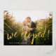Unsere schicken und modernen Hochzeitsankündigungen sind der perfekte Weg, um Freunde und Familie über Ihre Entdeckung, geheime Zeremonie oder private Hochzeit lassen. "We Eloped!" überlagert sich in handgeschriebenen Goldfolien-Stilpinseln auf Ihrem Lieblings-Vollblutprägung Horizontal oder landschaftsorientiertes Foto. Personalisieren Sie mit Ihren Namen und Hochzeitsdaten sowie eine persönliche Nachricht auf der Rückseite.