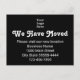 Diese sich bewegende Postkarte hat einen weißen Text, den Sie anpassen können. Diese schwarze Postkarte sagt, wir haben uns bewegt Bitte besuchen Sie unsere neue Lage. Zusätzliche Textzeilen können für Ihren Firmennamen, Ihre neue Adresse und Ihre Telefonnummer angepasst werden. Sie können das Display durch Ihr Firmenlogo ersetzen.