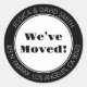 Wir haben uns bewegt! | Schwarz-Weiß-Rücksendeadre Runder Aufkleber