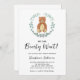 Niedliche Babydusche zum Thema Bären mit handgemälzter Abbildung eines Krübes mit Eukalyptus-Aquarell. In dem Text steht "Wir können frühzeitig warten!" in stylischer Typografie. Ideal für eine geschlechtsneutrale Dusche. Einfach anpassbar. Original Wasserfarbe © Michele Davies.