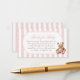 Eine zeitlose Touch für Ihre Babyduscheinladungen. Die Bücher für die Babykarte sind mit eleganten rosa Streifen, einem Vintagen Teddybär und klassischer Typografie gestaltet und laden die Gäste ein, die erste Bücherei des Babys mit einem hochgeschätzten Buch zu bauen.