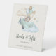 Helfen Sie Ihren Gästen, den perfekten Platz für ihre durchdachten Beiträge zu finden, mit diesem eleganten 'Bücher & Geschenke'-Tischschild. Mit einem charmanten Wasserfarben-Teddybären, der ein Vintage-Flugzeug durch weiche Wolken fliegt, ist dieses Schild eine professionelle und wunderliche Ergänzung zu Ihrer abenteuerlichen Babyparty.