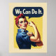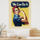 Dieses mächtige Design besticht durch Rosie the Riveter, die ihre klassische Pose mit einem erbitterten Blick überragt, ergänzt durch den kühlen Text "We Can Do It" oben. Die nostalgische Farbpalette aus Rot, Blues und Gelb verleiht ihr lebendiges Aussehen und ist somit perfekt für Poster geeignet. Dies ist ein von der KI generiertes Bild.