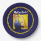 Hier ist ein Set von acht 9" Papier-Tellern mit einem Bild des denkwürdigen Posters von Rosie mit einem doppelgelben Rand. Rosie ist eine kulturelle Ikone der Vereinigten Staaten, die die amerikanischen Frauen repräsentiert, die während des Zweiten Weltkriegs in Fabriken arbeiteten, von denen viele in der Herstellung von Pflanze arbeiteten, die Munition und Kriegsmaterial produzierten. Diese Frauen nahmen manchmal völlig neue Jobs an, die die männlichen Arbeiter im Militär ersetzten. Rosie the Riveter wird gemeinhin als Symbol des Feminismus und des wirtschaftlichen Powers von Frauen verwendet.