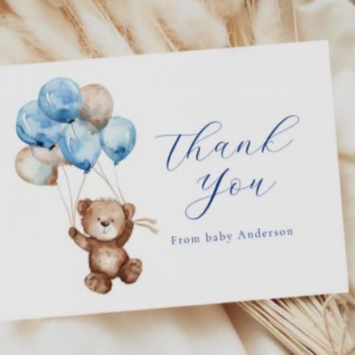 Wir können frühzeitig warten! Teddy-Bear-Babydusche Dankeschön-Karte mit einem Aquarellteddybär, der mit blauen und braunen Ballons hoch fliegt. Passen Sie Ihre Daten an, damit die Mommy sein kann. Klicken Sie auf "Klick um weitere Anpassungen vorzunehmen", um den Stil, die Größe oder die Farbe des Schriftartes zu ändern.