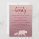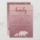 Dieses "We Can Bearly Wait" Design bringt ein spielerisches Waldleben in Ihre Babydusche. Mit seinen Silhouetten aus Süßbären, den sanften, rosa Omeletönen und den eleganten Schriftart Set eine gemütliche und dennoch moderne Stimmung. Personalisieren Sie Ihre Feier mit Namen und Details, um sie so herzlich wie das kleine auf dem Weg zu machen.