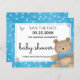 Digital gefärbte und handgezeichnete niedliche Teddybärenkunst Babydusche Save the Date Einladung Design. Elemente gemalt von Valarie Wade. Perfekt für jede Jahreszeit. Anpassbarer Text. Blue polka dot teddy Bär ist eine Babydusche zum Thema Junge. Klassisch