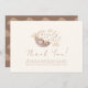 Wir können frühes Abwarten Gender Neutral Boy & Girl Baby Dusche Vielen Dank Karte Niedlichen schlampigen Buben Schlaf auf dem Mond Thema, Design mit beige, braun Creme, tan Farbe Schema. Babydusche mit Aquarell Abbildung eines Krübes mit Boho Mond, Wolke, Stern. Im Text steht: "Wir können frühzeitig warten!". Text- und Hintergrundfarbe können personalisiert sein.