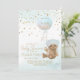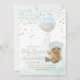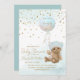 Ein Babybär, der einen blauen Ballon mit der Formulierung "wir können kaum warten" hält. Simulierter Glitzer.