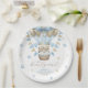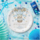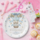 Diese hübschen "We Can Bearly Wait Twin Boy Baby Shower" runden Teller wären so niedlich an der Babydusche Ihres Lieben. Sie haben zwei junge Teddybären, die Herzballons in einem Heißluftballon halten, umgeben von blauen und bräunlichen Sternen und sagen "Wir können frühzeitig warten". Das Aquarelldesign ist modern und süß. Sie sehen auf den Tischen, dem Büffet, den Theken und dem Bar fantastisch aus.