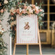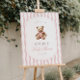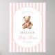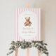 Die Gäste werden mit zeitlosem Charme empfangen. Dieses großmütige Babyduschzeichen mit sanften Wasserfarben-Streifen, einem Vintagen Teddybär und eleganter Typografie - der perfekte erste Eindruck für ein klassisches Fest.