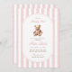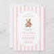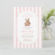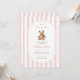 Ein süßes Nicken an die Tradition mit einer Touch zeitlosen Charmes. Diese tausendjährige Babydusche lädt mit weichen rosa Wasserfarbenstreifen, einem Vintagen Teddybär und eleganter Typografie zum Feiern einer kleinen Dame ein.