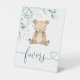Wir können frühzeitig warten Minimalistische Grünpflanzen Baby Duschfavors Pedestal Schild