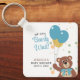 Dieser individuelle Name Schlüsselanhänger ist eine perfekte Babydusche für Ihren kleinen Prinzen. Das bezaubernde blaue Design enthält den Text "We Can Bearly Wait" und kann mit dem Namen des Babys personalisiert werden. Es dient als praktisches und stilvolles Accessoire, das Ihre Gäste jeden Tag nutzen können, und erinnert sie an die besondere Feier.
