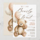 Diese weiche und skurrile "We Can Bearly Wait" Babydusche lädt mit einem bemalten Teddybär in Aquarellfarbe ein, der pastellfarbene Ballons hält und perfekt geeignet ist, um ein kleines Kind willkommen zu heißen. Der passende Back enthält einen scannbaren QR-Code für den Zugriff auf die Geschenkregistrierung. Neutrale Töne und eine delikate Kalligraphie machen es ideal für kleine Mädchen, Jungen oder Gender-neutrale Feiern. Eine süße und gemütliche Wahl für Waldflächen, rustikale oder moderne Babyduschen.