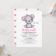 Benutzerdefinierte Babyshower-Einladung mit einem süßen Teddybär / Bärenjungen, verziert mit Mädchenhaftem Rosa.