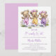 Feiern Sie die bevorstehende Ankunft Ihres kleinen Sonnenscheins, indem Sie Ihre Freunde und Lieben mit dieser Einladung zu Ihrer Babyparty einladen. Die Einladung zeigt drei niedliche Teddybären mit Punktenoverall, die Seilspringen spielen. Der anpassbare Text ermöglicht es Ihnen mühelos Ihren Namen, das Datum und die Uhrzeit der Feier sowie die RSVP-Informationen hinzuzufügen. Eine Vielzahl von Papierarten und Eckstilen ist für Ihre einzigartigen Einladungen erhältlich, zusammen mit der Möglichkeit, sie im digitalen Format herunterzuladen, wenn Sie dies bevorzugen.