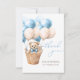 Wir können frühzeitig warten Teddy tragen Heißluftballon blauen Jungen Babydusche danke Karte.