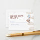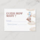 Fügen Sie Ihrem Baby Dusche etwas Spaß mit diesem 'We Can Bearly Wait' Ratschlag Wie viele Spielkarte. Mit einem süßen Teddybär, der einen Ballon und weiche Aquarelltöne hält, wird dieses Spiel Ihre Gäste dazu bringen, die Anzahl der Gegenstände in einem Glas zu schätzen, während Sie die bevorstehende Ankunft Ihres Kleinen feiern. Eine skurrile Touch für ein spannendes und unvergessliches Fest!