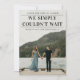 Eine zeitgemäße Hochzeitsankündigung mit dem Thema "Wir konnten einfach nicht auf Schlagzeilen warten". Eine tolle Möglichkeit, Lieblinge lassen, wissen, dass du den Knoten gefesselt hast. Die Rückseite ermöglicht eine personalisierte Nachricht an Freunde und Familie oder kann entfernt werden, wenn gewünscht. Klicken Sie auf Bearbeiten, um es anzupassen.