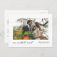 Wenn Sie sich entschieden haben, zu elope statt einer großen Hochzeit, teilen Sie Ihre großen Neuigkeiten mit Freunden und Familie mit dieser modernen Ankündigung Postkarte. Es bietet Platz für ein waagerechtes Single-Foto auf der Vorderseite über die Worte "wir konnten nicht warten", Platz für Ihre Namen und das Datum, an dem Sie verheiratet waren. Die Rückseite der Postkarte hat Platz für eine persönliche Nachricht.