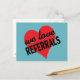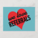 Wir Liebe Referrals Design mit einem roten Herz auf einem aqua Hintergrund ist ideal für Immobilienmakler oder jedes Unternehmen, um Ihre Kunden daran zu erinnern, Sie zu ihren Freunden und Familien zu empfehlen. Schicken Sie Ihren zufriedenen Kunden nach einem Job oder Service ist abgeschlossen, oder nur an Ihre Freunde und Mitarbeiter als direkte Marketing-Erinnerung.