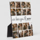 Niedliche Müttertagsbilderplakette mit einer 16-Foto-Collage-Vorlage der Kinder, dem Sprichwort "Wir Liebe du Mom" in einem eleganten Skript-Schriftart und den Kindernamen.