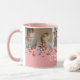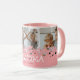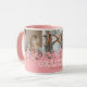 Moderne Großmutter-Tasse mit einer Foto-Collage der Enkel, einem niedlichen rosa Herzdesign, dem Sprichwort "Wir Liebe du Oma" und den Kindernamen.