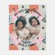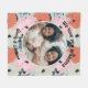 Personalisierte, elegante, blumengeschmückte Fleecedecke mit orangefarbenen, rosa und weißen Blume, individuellem Foto und Namen.