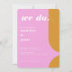 Unsere minimale, mutige Retro-Hochzeitseinladung ist perfekt für das trendige Ehepaar, das von Lieben stehend und kühn gesprochen wird. Unser Design zeichnet sich durch eine fett hellrosa Farbe und eine gelbe Kombination aus. Einfache abstrakte Bogen- und Kreisformen schaffen einen kühnen Look mit "We Do", der mutig in weißem, großen Schriftart angezeigt wird. Auf der Rückseite des Hauses befindet sich ein einfaches modernes Design mit einem fett gedruckten Monogramm und einer optionalen Website-Adresse für die Hochzeit eines Paares. Von Moodthology Papery entworfen