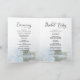 Machen Sie es Ihren Gästen leicht, mit der Zeremonie dieser schönen gefalteten Hochzeitsfeier mitzumachen. Das Design ist atemberaubend und romantisch, mit einem Single, der lange gestemmt blassblaue Rose in blauen Farben auf der Seite liegt und in einem Wasserbecken spiegelt. Für die Titel gibt es eine moderne Schrift mit Raum für Details zur Zeremonie, zum Brautparty, zum Foto, einer Dankeschön-Notiz und einem kurzen Denkmal. Die Formulierung auf der Vorderseite lautet "Wir tun" mit einem niedlichen romantischen Herz zwischen den Buchstaben. Elegant und dennoch lustig, sind diese Programme eine wunderbare Ergänzung zu Ihrer Hochzeitsarbeit.