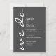 Eine moderne Hochzeitseinladung in Weiß- und Grautönen.