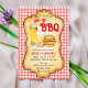 Wir machen GRILLEN Barbecue roten Karo Hintergrund Haushalt Brautdusche Einladung Vorlage.