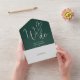 Diese minimalistische Hochzeitseinladung mit eleganter Typografie auf smaragdgrünem Hintergrund. Die Einladung enthält eine perforierte RSVP-Karte, die individuell adressiert oder links werden kann, damit Sie die Adressdaten Ihres Gastes handschreiben können. Entwickelt von Thisisnotme©