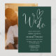 Diese smaragdgrüne, elegante Script Hochzeitseinladung kann mit all Ihren besonderen Hochzeitstagsinformationen und einem besonderen Foto auf der Rückseite personalisiert werden. Entwickelt von Thisisnotme©