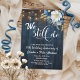 Diese Einladung zum Hochzeitstag hat eine elegante Skriptkalligraphie ergänzt durch wunderschönes blaues Holz, Gartenseillichter und weißblaue Blüten mit goldenem Glitzer. Sie können diese Einladung mit Ihren Details zum Hochzeitstag personalisieren.