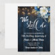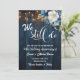 Eine elegante Hochzeitsjubiläumskarte mit eleganter Kalligrafie, ergänzt durch wunderschönes blaues Holz, Gartensaitenleuchten und weißblaue Blüten mit goldenem Glitzer. Sie können diese Karte mit Ihren Details zum Hochzeitstag personalisieren.
