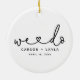 Mit diesem eleganten und minimalistischen Keramik-Ornament begehen Sie einen ganz besonderen Tag. Mit dem herzlichen Ausdruck "Wir tun" in einem handgeschriebenen Skript; die Wörter sind nahtlos durch ein zartes Herz verbunden und symbolisieren Ihre Liebe. Zeitloses minimalistisches Design in Schwarz/Weiß, das zu jeder Wohngestaltung passt. Personalisieren Sie es mit den Vornamen des Paares und dem Hochzeitsdatum, um einen gepflegten Sake zu kreieren, der Ihre Zuhause noch über Jahre schmücken wird. Ob es an Ihrem Weihnachtsbaum hängt oder ganzjährig ausgestellt wird, dieses Ornament ist eine schöne Erinnerung Ihrer Liebe und Ihres Engagements. © Kimbellished, LLC