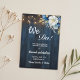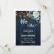Eine elegante Save the Date-Card mit eleganter Kalligraphie, ergänzt durch wunderschönes blaues Holz, grüne Saitenleuchten und weißblaues Blumenmuster mit goldenem Glitzer. Sie können diese Karte mit Ihren Daten vor der Hochzeit personalisieren.