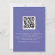 Script We Do Blue QR Code Hochzeit Fügen Sie Ihren QR-Code auf Ihrer Hochzeitswebsite auf der Rückseite macht dies zu einer bequemen Möglichkeit für Ihre Gäste, um alle Details zu sehen und ohne die Notwendigkeit für separate UAWG und Details Karten. Ein schlichtes, aber elegantes Design auf dem Hintergrund von Perwinkle blauen Violett. Stilvolles Set-Skript We Do nimmt die mittlere Bühne an der Spitze.Die Erholung des Textes können Sie leicht personalisieren. Text- und Hintergrundfarben können geändert werden, wenn Sie Ihr Hochzeitstil besser Anzug über die weitere Option anpassen möchten.