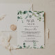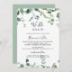Diese erneute Einladung zum grünen Blattwerk ist perfekt für ein modernes Event. Das Design ist mit Aquarellfarben handgezeichnet eleganten botanischen Eukalyptuszweigen und Blätter, die in schönen Bouquets und geometrischen Mustern angeordnet sind.