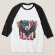 Zeigen Sie Ihren amerikanischen Stolz mit diesem kühnen und patriotischen Design mit einem Glatzenadler, der vor dem Hintergrund der amerikanischen Flagge fliegt.